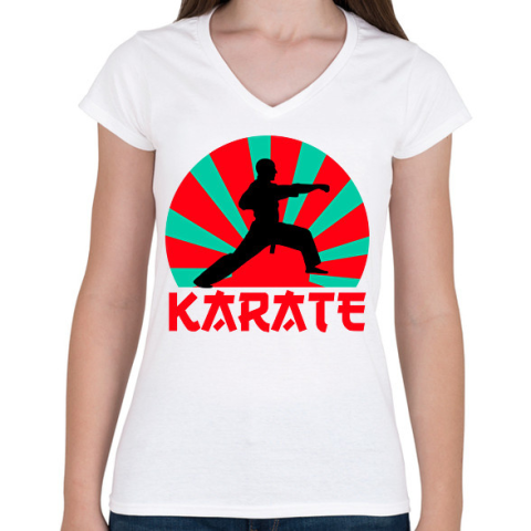 1 kép PRINTFASHION KARATE - Női V-nyakú póló - Fehér