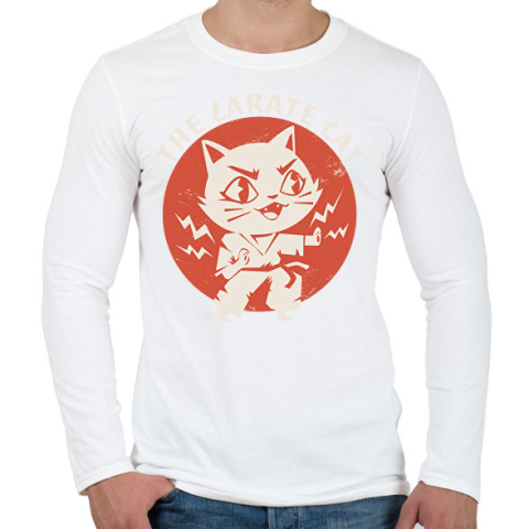 1 kép PRINTFASHION Karatés cica - Férfi hosszú ujjú póló - Fehér