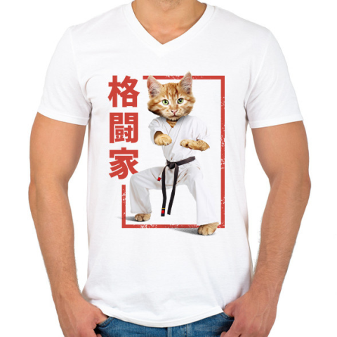 1 kép PRINTFASHION Karatés cica - Férfi V-nyakú póló - Fehér