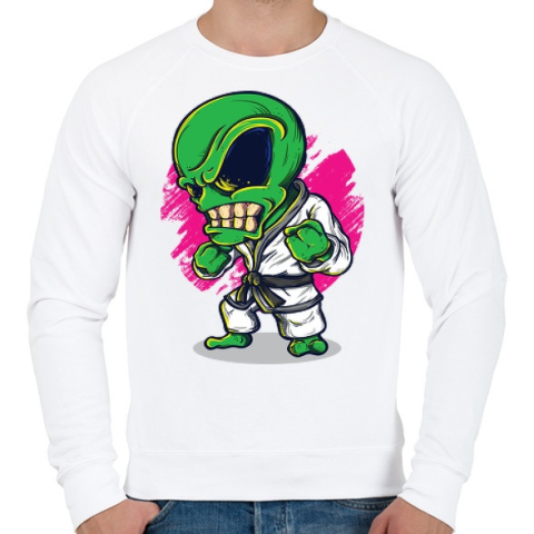 1 kép PRINTFASHION Karatés idegen - Férfi pulóver - Fehér