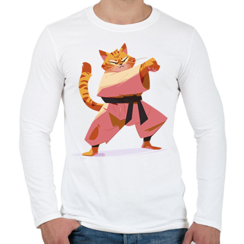 1 kép PRINTFASHION Karatés macska - Férfi hosszú ujjú póló - Fehér
