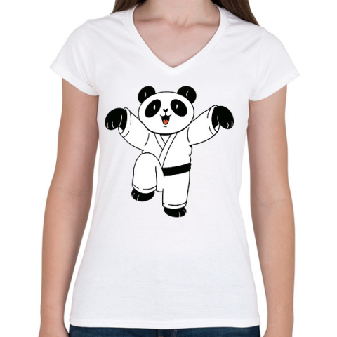 1 kép PRINTFASHION Karatés panda - Női V-nyakú póló - Fehér