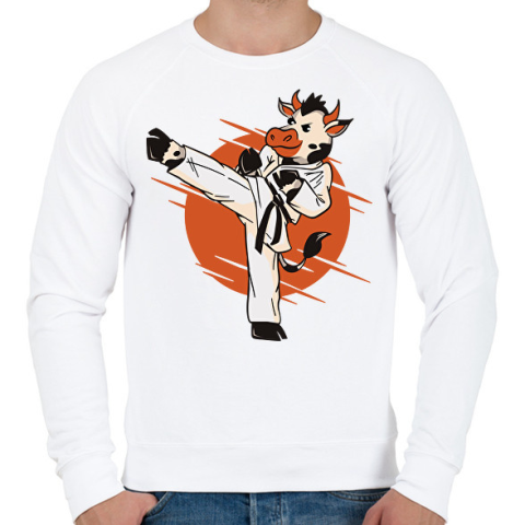 1 kép PRINTFASHION Karatés tehén - Férfi pulóver - Fehér