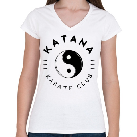 1 kép PRINTFASHION Katana karate club - Női V-nyakú póló - Fehér