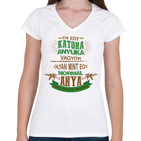 1 kép PRINTFASHION Katona anyuka - Női V-nyakú póló - Fehér