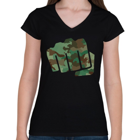 1 kép PRINTFASHION Katona öklös - Női V-nyakú póló - Fekete