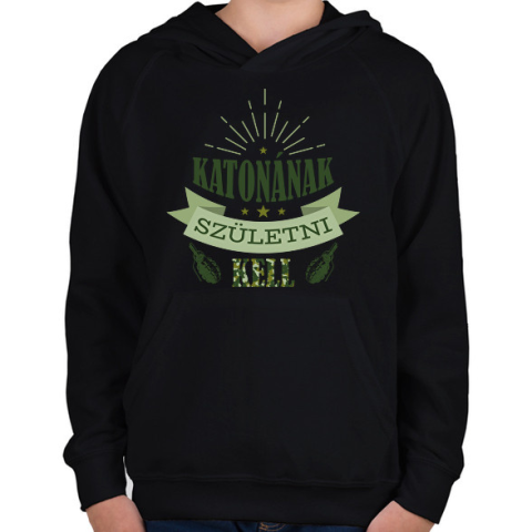 1 kép PRINTFASHION Katonának születni kell - Gyerek kapucnis pulóver - Fekete