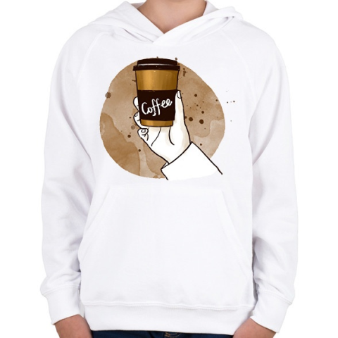 1 kép PRINTFASHION Kávé elvitelre - Gyerek kapucnis pulóver - Fehér