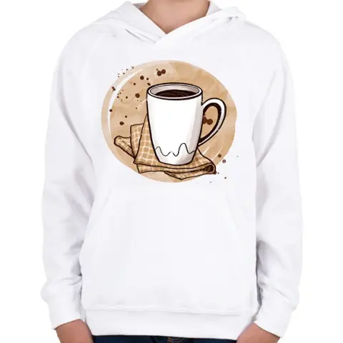 1 kép PRINTFASHION Kávé - Gyerek kapucnis pulóver - Fehér