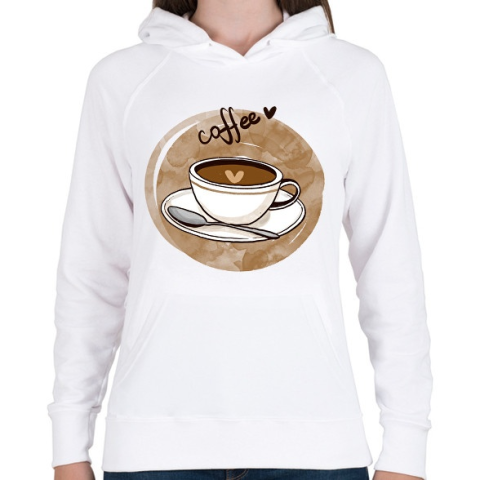 1 kép PRINTFASHION Kávé szívecskével - Női kapucnis pulóver - Fehér