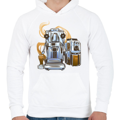 1 kép PRINTFASHION Kávégép - Férfi kapucnis pulóver - Fehér