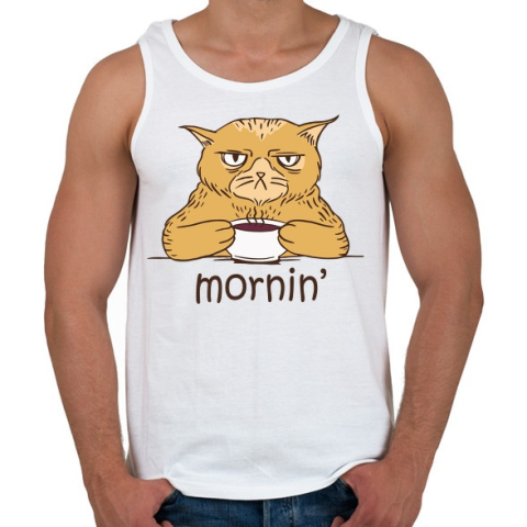 1 kép PRINTFASHION Kávés macska - Coffee cat - Mornin' - Férfi atléta - Fehér