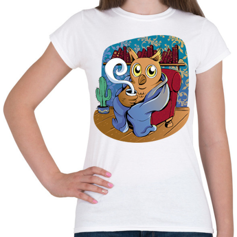 1 kép PRINTFASHION Kávézó bagoly - Női póló - Fehér