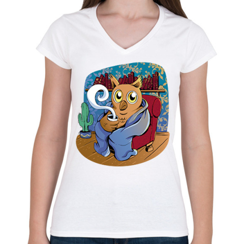 1 kép PRINTFASHION Kávézó bagoly - Női V-nyakú póló - Fehér