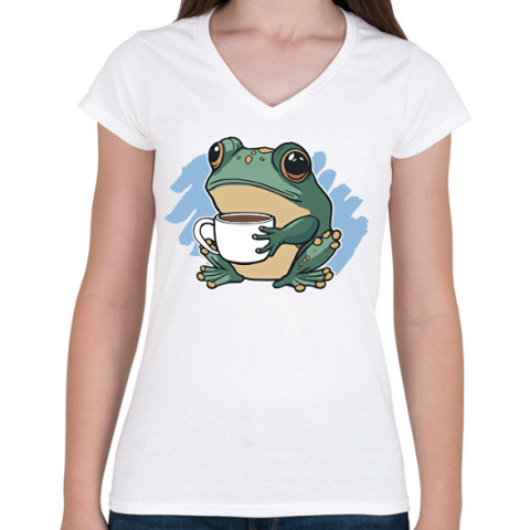 1 kép PRINTFASHION Kávézó béka - Női V-nyakú póló - Fehér