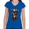 1 kép PRINTFASHION Kávézó kaszás - Női V-nyakú póló - Királykék