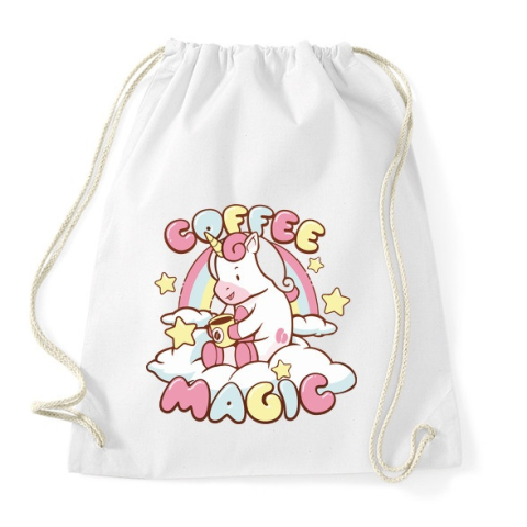 1 kép PRINTFASHION Kávézó unikornis - Coffee magic - Sportzsák, Tornazsák - Fehér