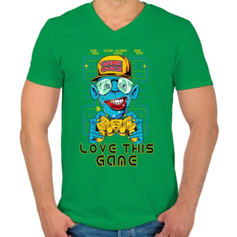1 kép PRINTFASHION Kedvenc játékom - Férfi V-nyakú póló - Zöld