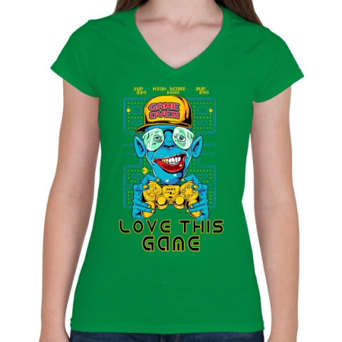 1 kép PRINTFASHION Kedvenc játékom - Női V-nyakú póló - Zöld