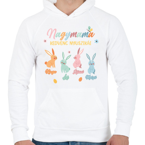 1 kép PRINTFASHION Kedvenc nyuszikák - Névvel - Férfi kapucnis pulóver - Fehér