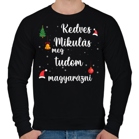 1 kép PRINTFASHION Kedves Mikulás meg tudom magyarázni - Férfi pulóver - Fekete