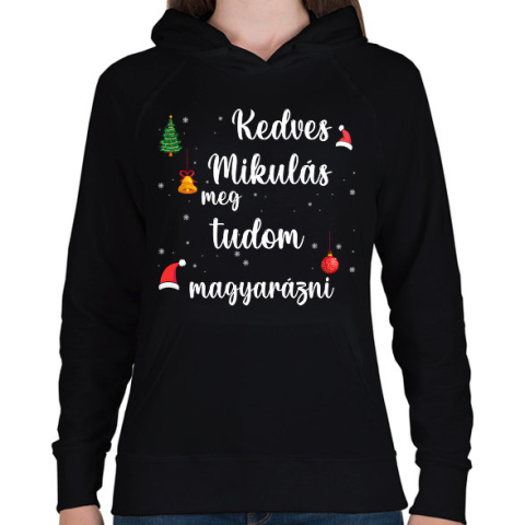 1 kép PRINTFASHION Kedves Mikulás meg tudom magyarázni - Női kapucnis pulóver - Fekete