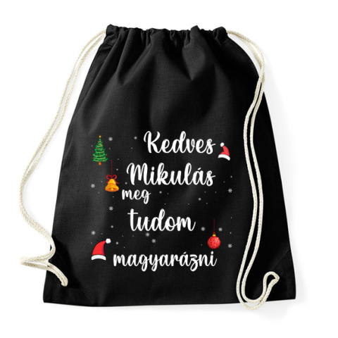 1 kép PRINTFASHION Kedves Mikulás meg tudom magyarázni - Sportzsák, Tornazsák - Fekete