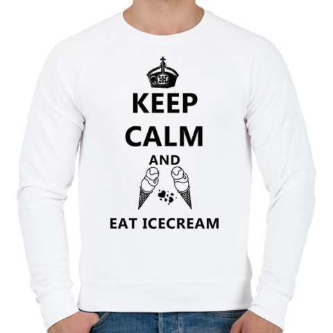 1 kép PRINTFASHION KEEP CALM AND EAT ICECREAM - Férfi pulóver - Fehér