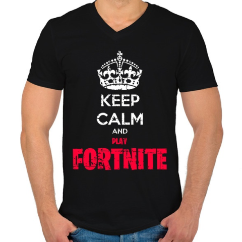 1 kép PRINTFASHION Keep Calm Fortnite - Férfi V-nyakú póló - Fekete