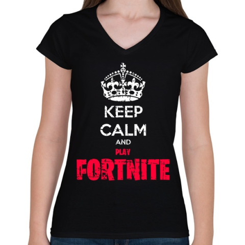1 kép PRINTFASHION Keep Calm Fortnite - Női V-nyakú póló - Fekete
