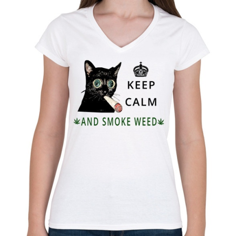 1 kép PRINTFASHION KEEP CALM - Női V-nyakú póló - Fehér