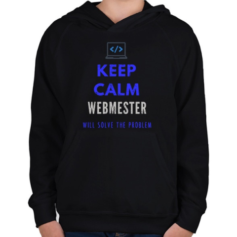 1 kép PRINTFASHION KEEP CALM WEBMASTER - Gyerek kapucnis pulóver - Fekete