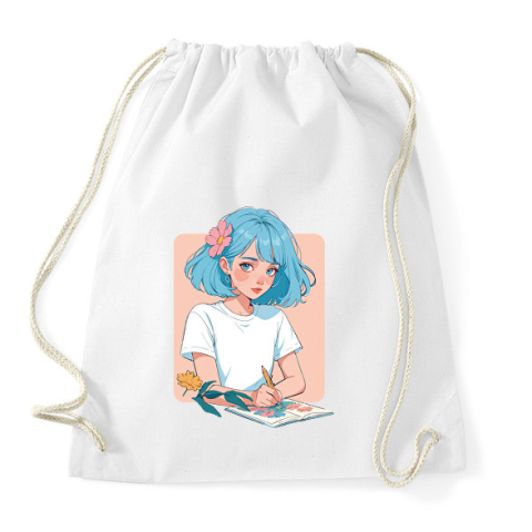 1 kép PRINTFASHION Kék hajú lány - Sportzsák, Tornazsák - Fehér