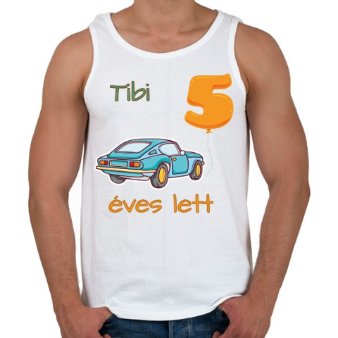 1 kép PRINTFASHION Kék kocsi - névvel, számmal - Férfi atléta - Fehér