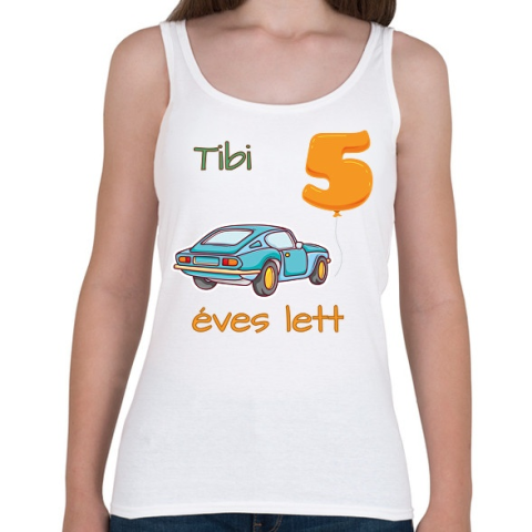 1 kép PRINTFASHION Kék kocsi - névvel, számmal - Női atléta - Fehér