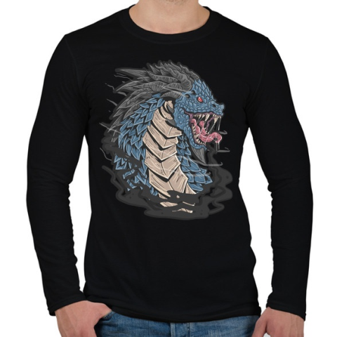1 kép PRINTFASHION Kék sárkány - Férfi hosszú ujjú póló - Fekete