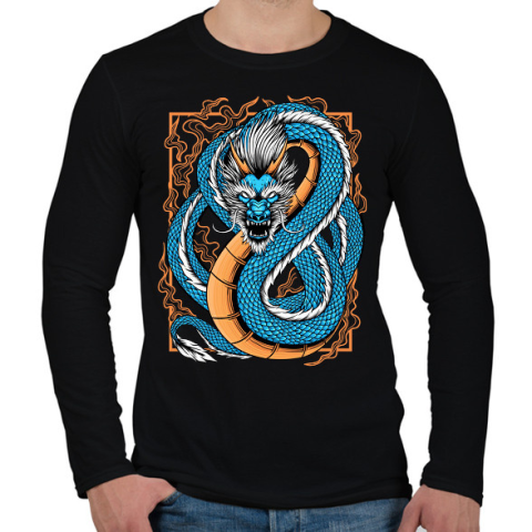 1 kép PRINTFASHION Kék sárkány - Férfi hosszú ujjú póló - Fekete