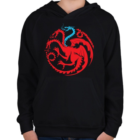 1 kép PRINTFASHION Kék sárkány - Gyerek kapucnis pulóver - Fekete