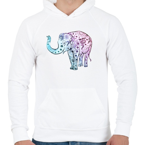 1 kép PRINTFASHION Kék virágos elefánt - Férfi kapucnis pulóver - Fehér