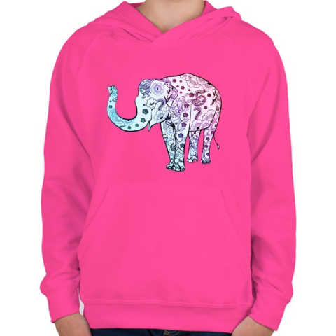 1 kép PRINTFASHION Kék virágos elefánt - Gyerek kapucnis pulóver - Fukszia