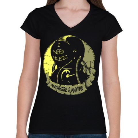 1 kép PRINTFASHION Kell a zene - Női V-nyakú póló - Fekete