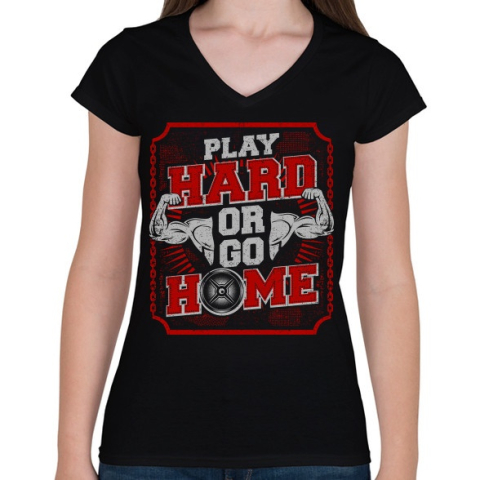 1 kép PRINTFASHION Kemény edzés! - Női V-nyakú póló - Fekete