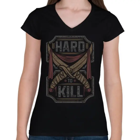 1 kép PRINTFASHION Kemény gyilkos - Női V-nyakú póló - Fekete