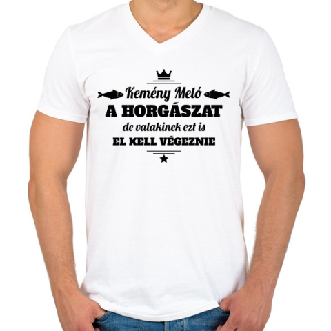 1 kép PRINTFASHION Kemény meló a horgászat... - Férfi V-nyakú póló - Fehér