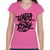 1 kép PRINTFASHION Keményen dolgozni, imádkozni - Női V-nyakú póló - Rózsaszín