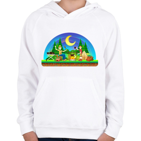 1 kép PRINTFASHION Kempingezés - Gyerek kapucnis pulóver - Fehér