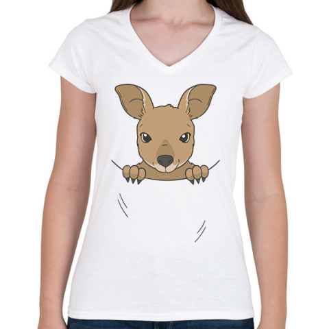 1 kép PRINTFASHION Kenguru bébi - Női V-nyakú póló - Fehér