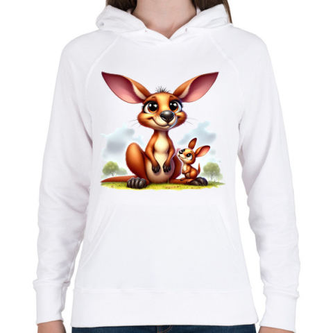 1 kép PRINTFASHION Kenguru mama és a babája - Női kapucnis pulóver - Fehér