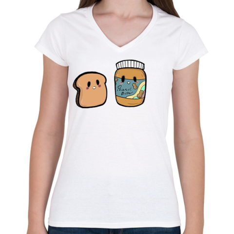 1 kép PRINTFASHION Kenyér és mogyoróvaj - Női V-nyakú póló - Fehér