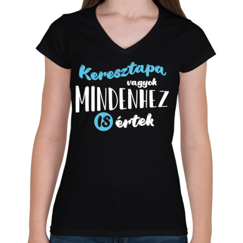 1 kép PRINTFASHION Keresztapa vagyok - fehér - Női V-nyakú póló - Fekete